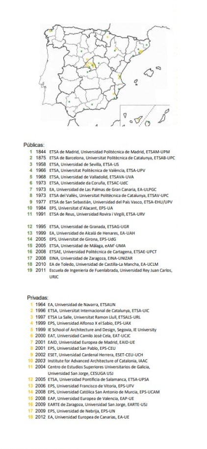 Mapa de las Escuelas de Arquitectura Españolas - autor: Daniel García Escudero ETSAB